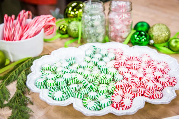 I made a dozen peppermint plates this week for Home and Family on the Hallmark Channel and I was thinking of using them as dessert plates at the Christmas table!