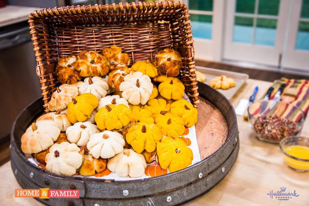 Thanksgiving is the time to give thanks! So why not write it down and stuff it in a pumpkin roll! I made these Thanksgiving pumpkin rolls on Home and Family today on the Hallmark Channel (weekdays 10am/9c).