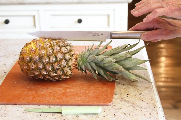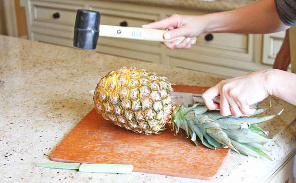 Now use the mallet to tap the rest of the knife through the pineapple.