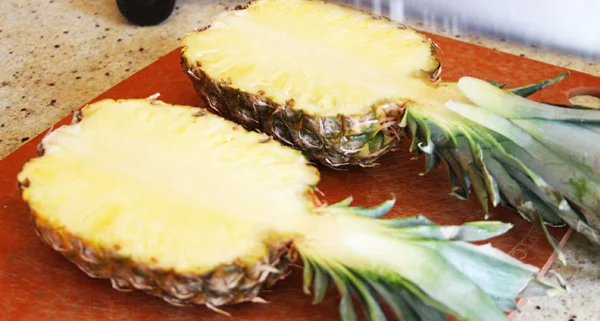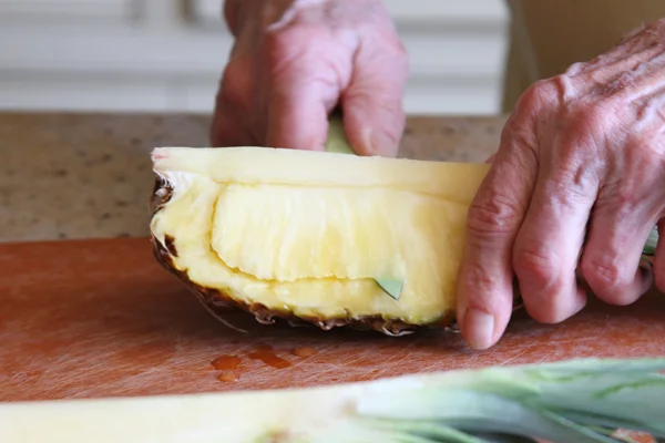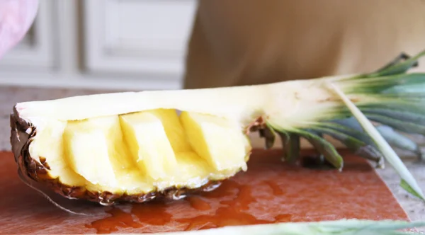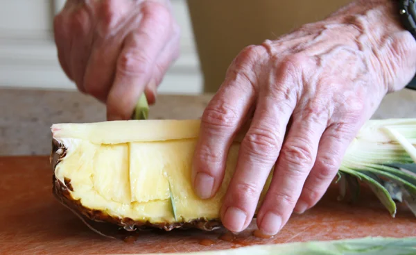 Here are your four pineapple boats. Now you can put the mallet and large knife away. All you need now is your small carving knife.