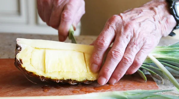 Every Christmas, Easter, and occasionally Thanksgiving, Papa makes his beautiful pineapple boats for everyone to enjoy. I asked him to give us a tutorial on how he makes his pineapple boats and being a sucker for the camera he said, "Sure!"