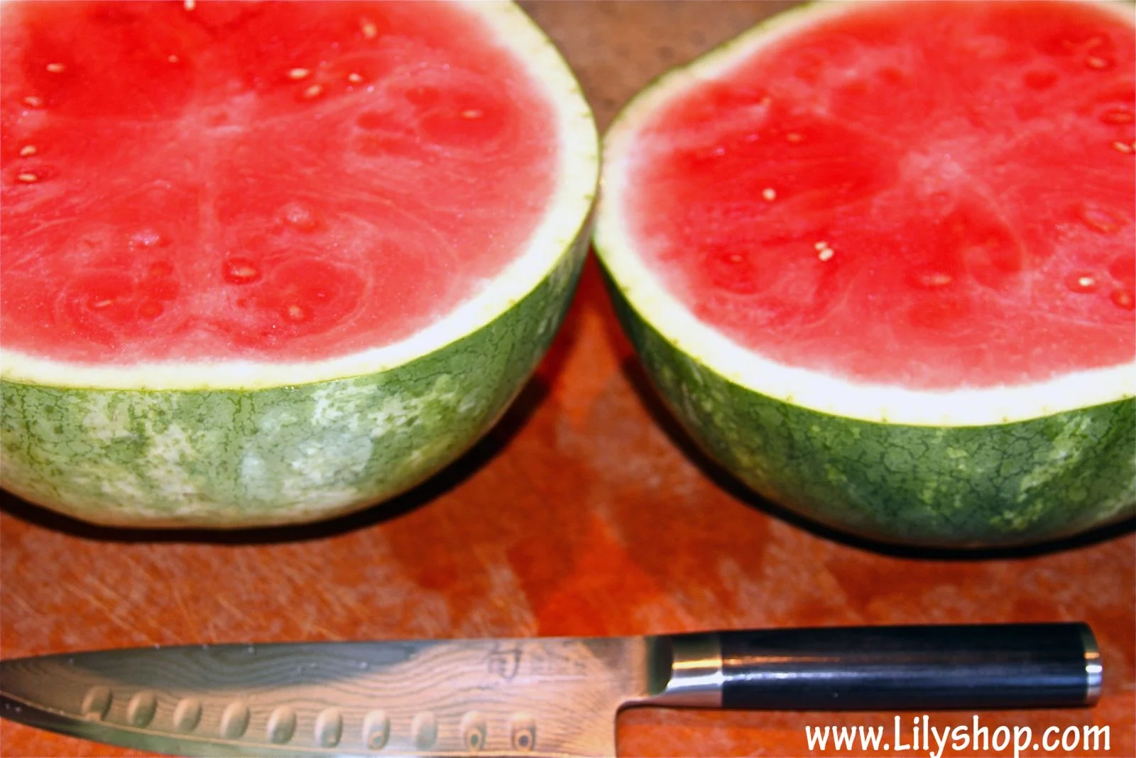 1. Cut your watermelon in half and scoop out half the melon with a melon-baller. Make sure to get all the way down to the white rind.
