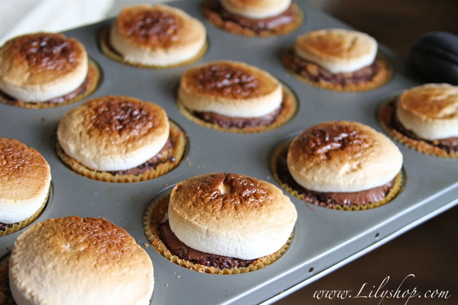 3. Place marshmallows on all the brownies. I used the new JUMBO marshmallows (from Target) and cut each marshmallow into 3 pieces to get the giant circles you see above. You can also use mini marshmallows. Return to the oven for literally 1 or 2 minutes. Do not take your eyes off the marshmallows. Once they start getting brown remove immediately. They will continue to brown for a couple seconds after remove them. Let cool and serve warm.