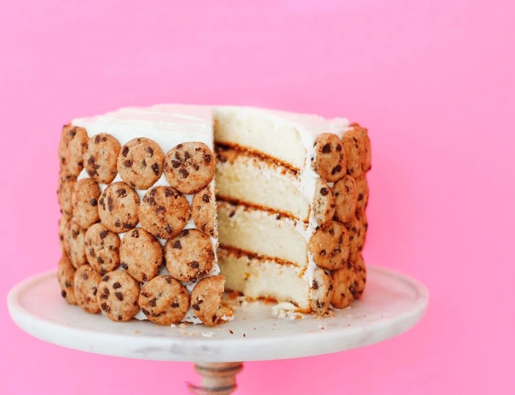 15. Carefully press mini Chipsahoy cookies around the cake until it's complete.