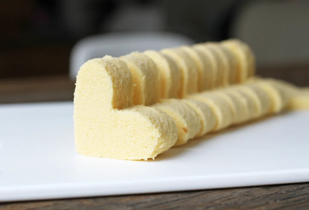 3. Thaw your pound cake and slice it into 2" slices. Use a heart cookie cutter to cut out hearts in the center of each pound cake slice. Set aside.