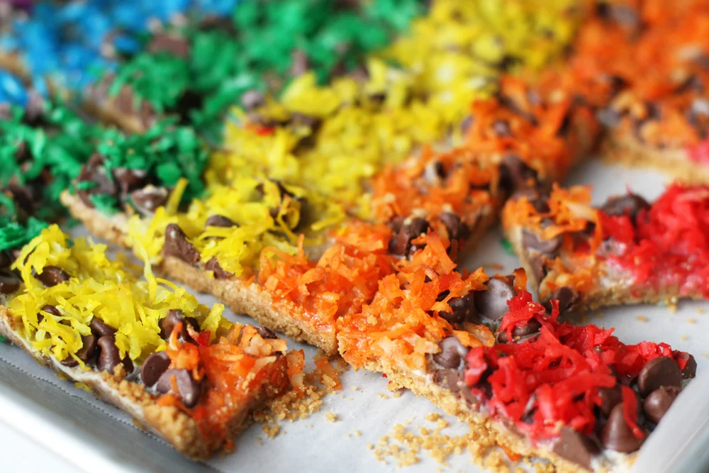 Rainbow Chocolate Coconut Bars