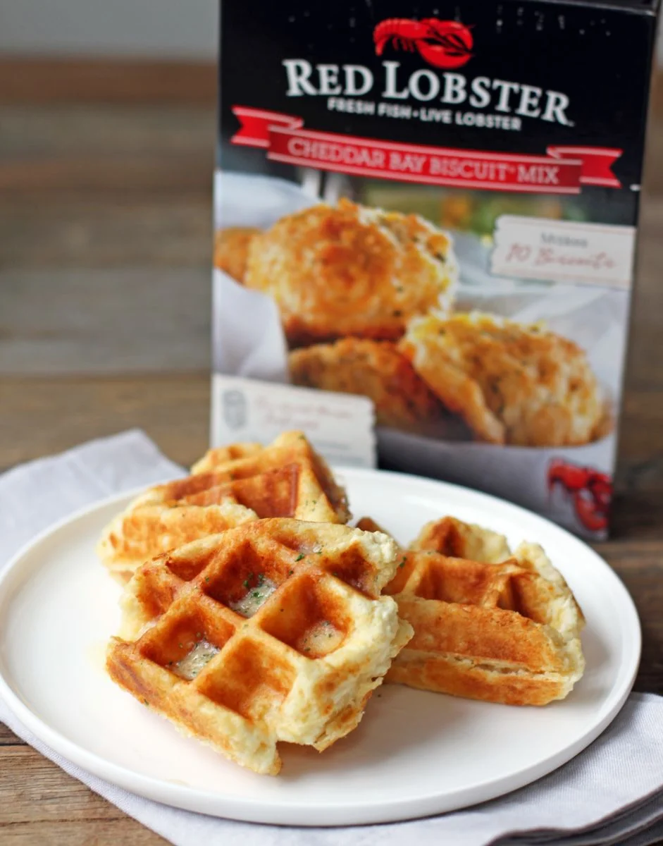 Karen made the OG Red Lobster Biscuits last year, but we both agree that by cooking them on the waffle iron you get the perfect ratio of crunchiness to soft flakey center to the waffle pockets on top that hold the seasoned butter just perfectly.