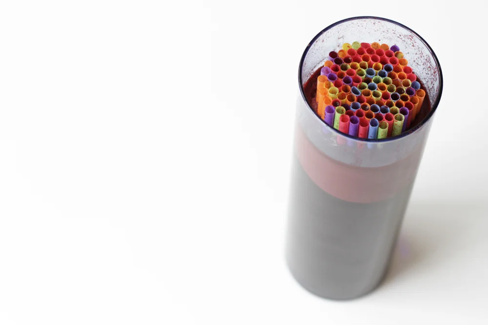 4. Add the gelatin mixture to the container of straws. Let it set in the refrigerator until firm. Approximately 4 hours.