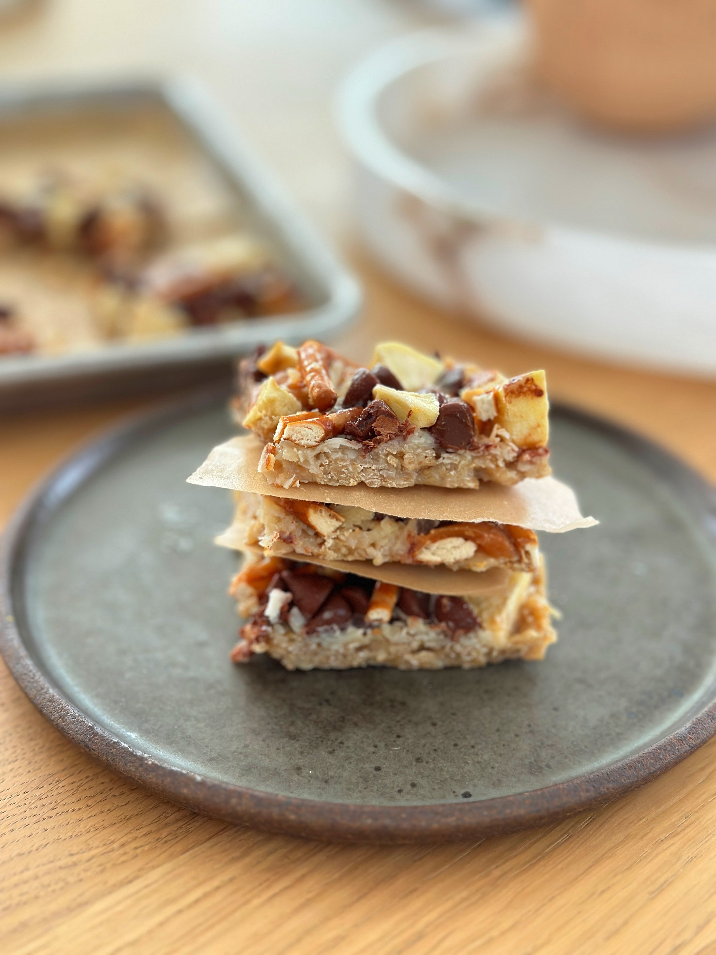 Magic bars are always decadent, but this caramel apple oatmeal version is perfect for any Fall enthusiast! The pretzels add a crunch and the flake salt breaks up the sweetness. They are delicious and super gooey. Scroll down for the recipe!
