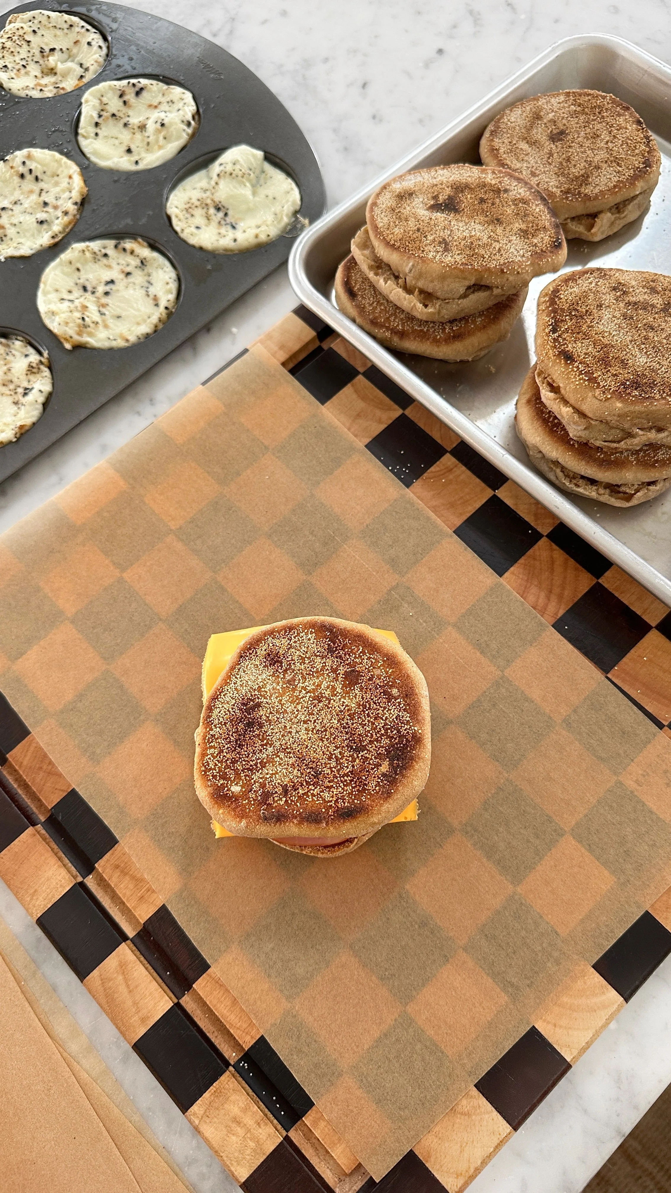 Today we are meal prepping a healthier version, but feel free to add butter or use a regular (not light) English muffin and make them even more delicious. Recipe below!