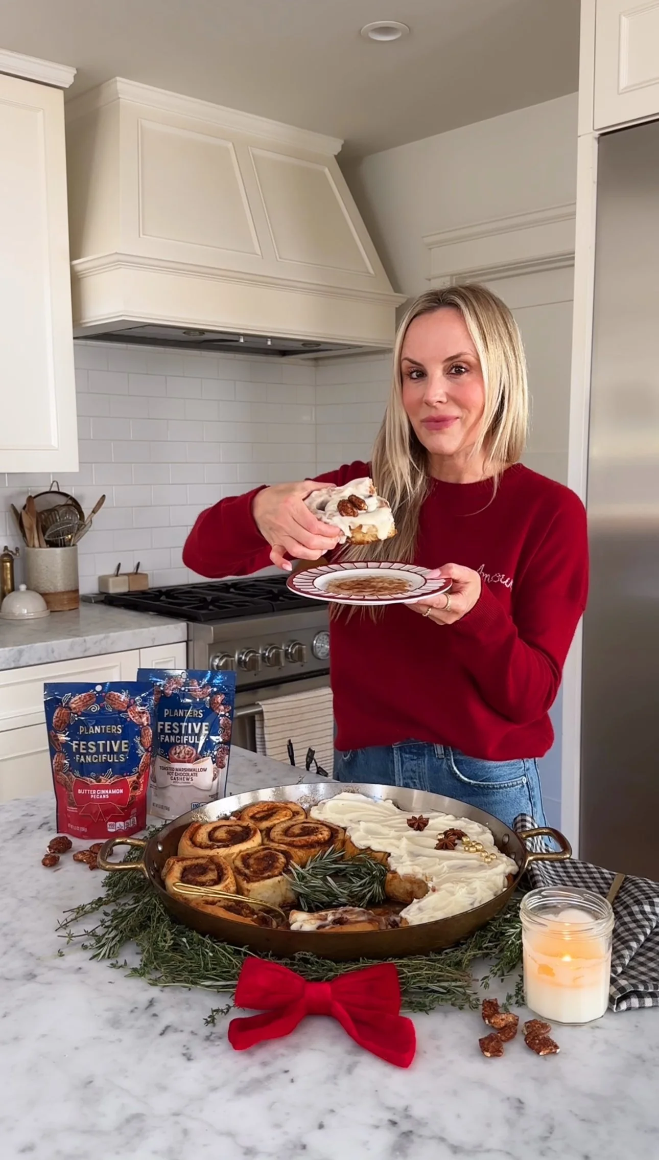 #PLANTERSBrandPartner Overnight Pecan Cinnamon Rolls with @mrpeanutofficial š„¹ because an edible wreath = holiday magic⨠Every cinnamon roll is layered with PLANTERSĀ® FESTIVE FANCIFULS⢠butter cinnamon pecans and drizzled with a rich cream cheese icing. We make these the night before Christmas while we watch a Christmas movie and bake in the morning š SO good! Comment PECAN for the recipe!
