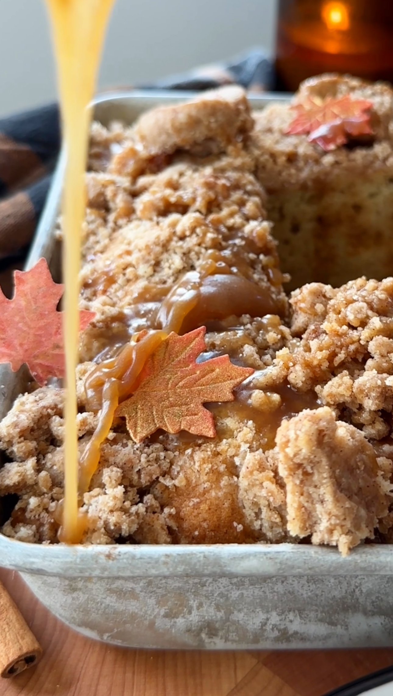 Fall Buttered Rum Crumb Cake 🍁 with @McCormickspice because your basic pumpkin pie just isn’t going to cut it this year 😉 This crumb cake is packed with McCormick spices and glazed with a rich buttered rum drizzle. SO good. Recipe below!