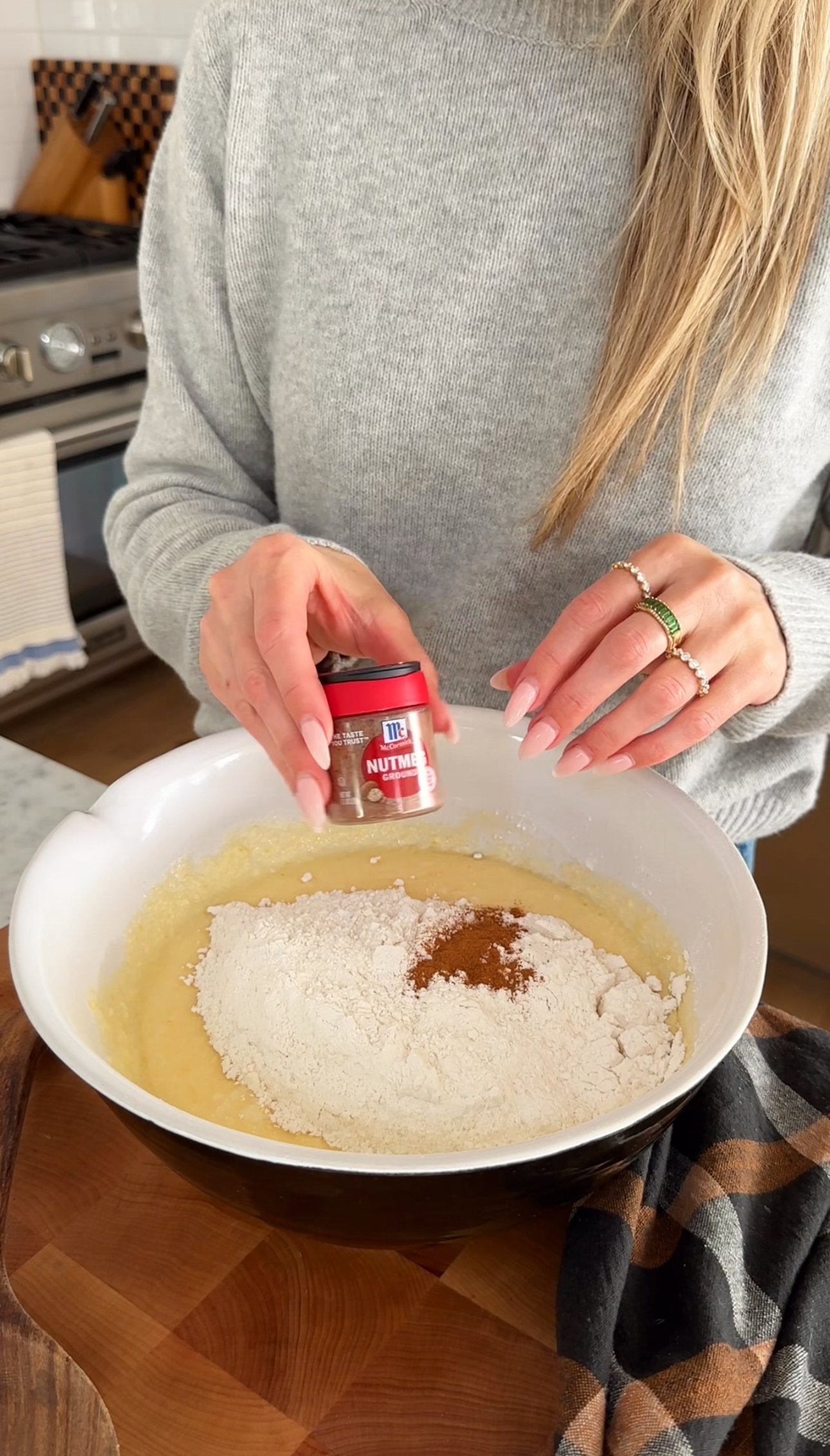 Make the cake: In a separate bowl, whisk together the flour, baking soda, baking powder, salt, and McCormick® Ground Nutmeg. Set aside.