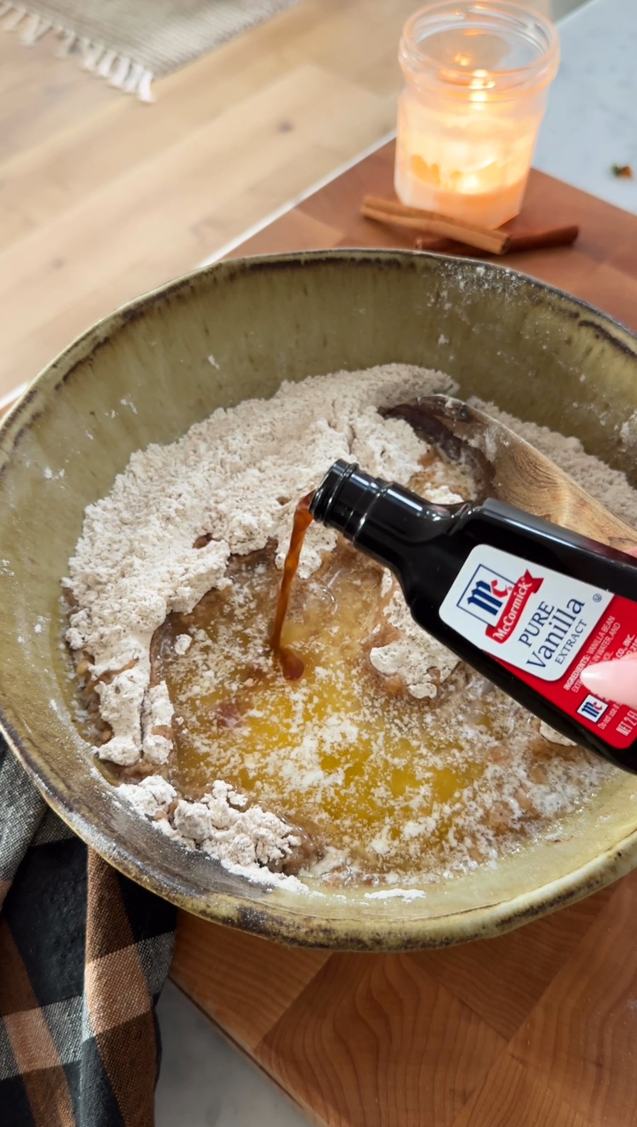 In a large mixing bowl, beat the butter and sugar on high speed until smooth and creamy. Add the eggs, sour cream, and McCormick® Pure Vanilla Extract, then beat until combined. The batter may look curdled. It’s absolutely fine. Mix in the dry ingredients until smooth and thick.