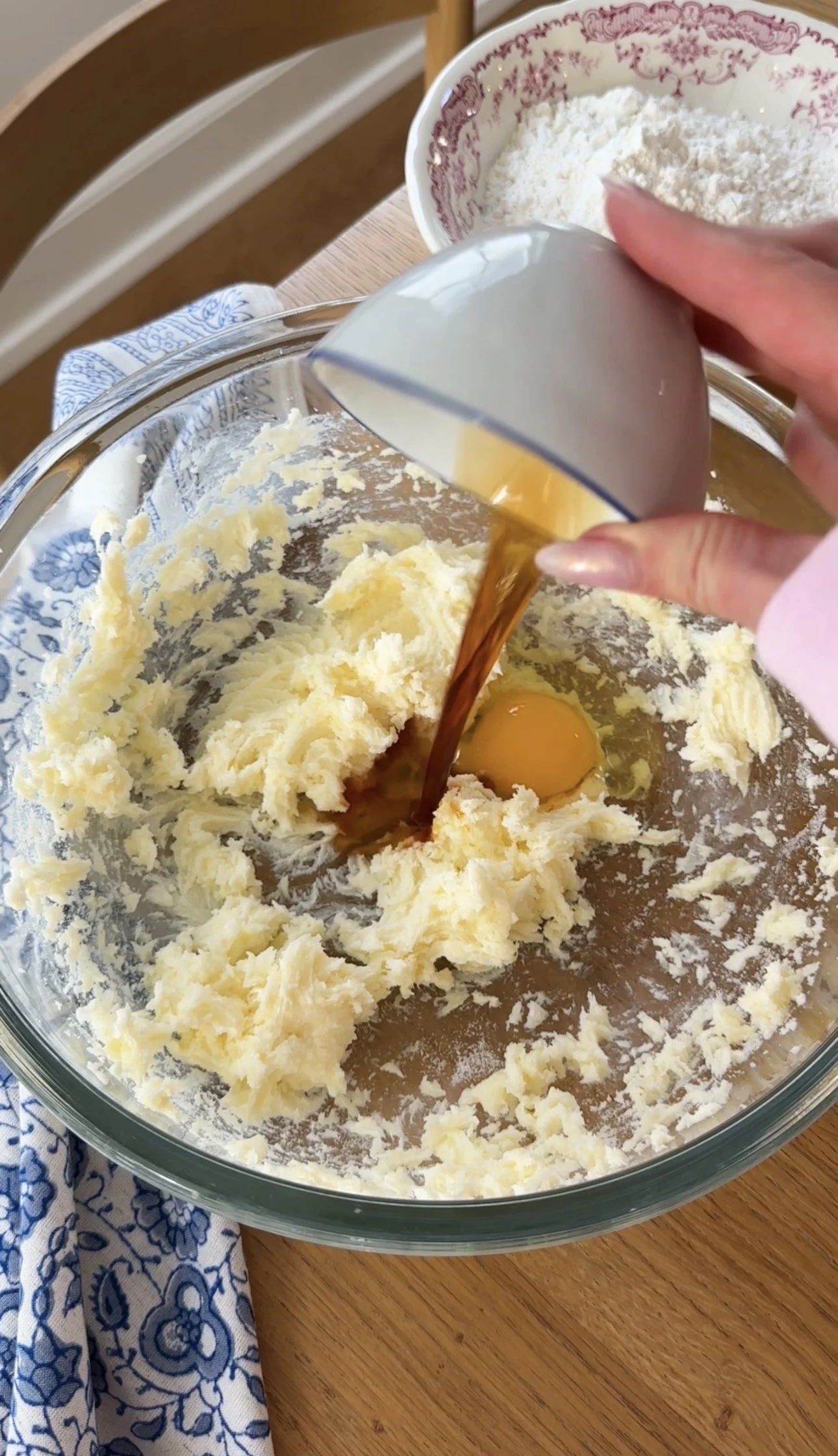 Beat butter and sugar on medium-high until smooth, about 2 minutes. Add salt, egg, vanilla, and almond extract; beat until combined, scraping the bowl as needed.