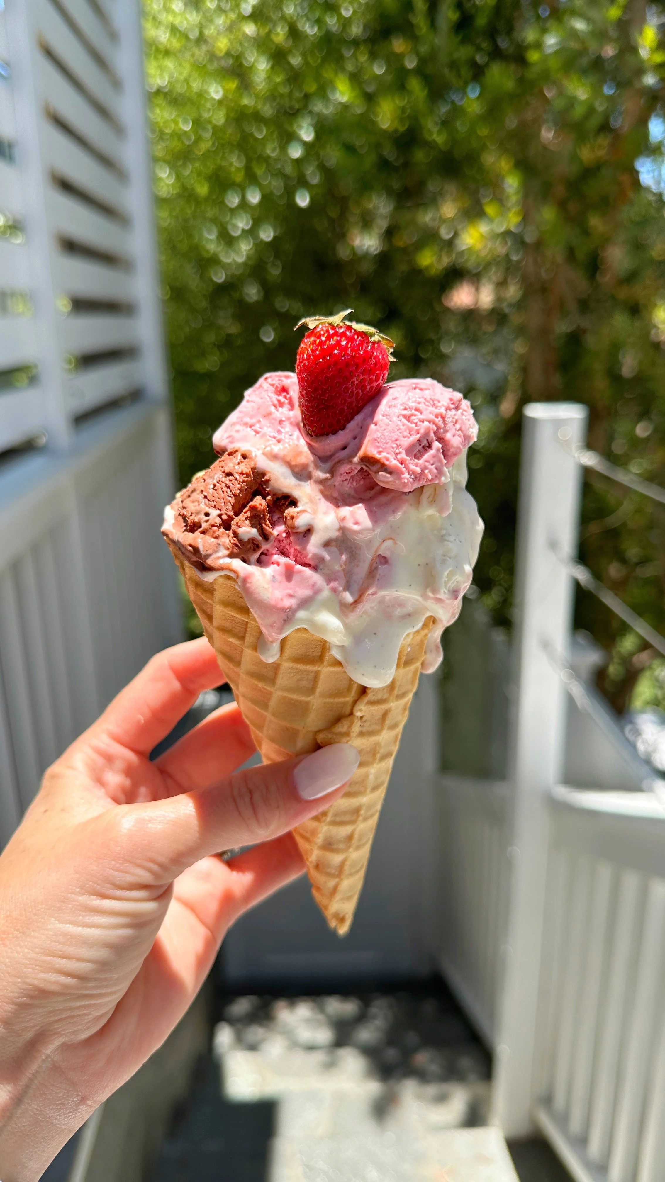 Homemade no-churn Neapolitan Ice Cream 🍦 I feel like I can’t even express how unbelievable this is 😭🥰 You don’t even need an ice cream maker. I used puréed strawberries for the 🍓 layer and high quality cocoa powder for the creamy 🍫. Someone please make it and tag me. It’s unreal.