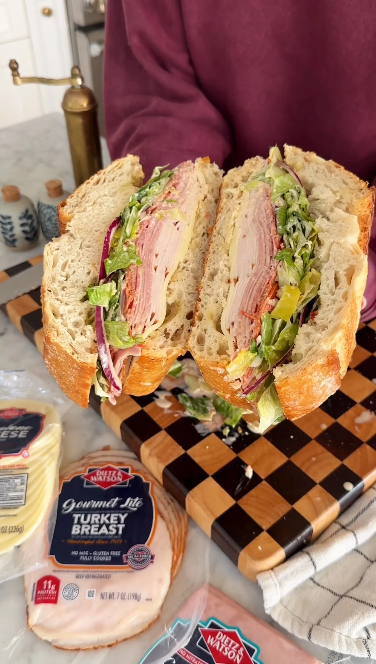 Yes! You can prepare the grinder salad and slice the meats and cheese in advance. For the best texture, assemble the sandwich just before serving so the bread stays crisp and doesn’t get soggy.