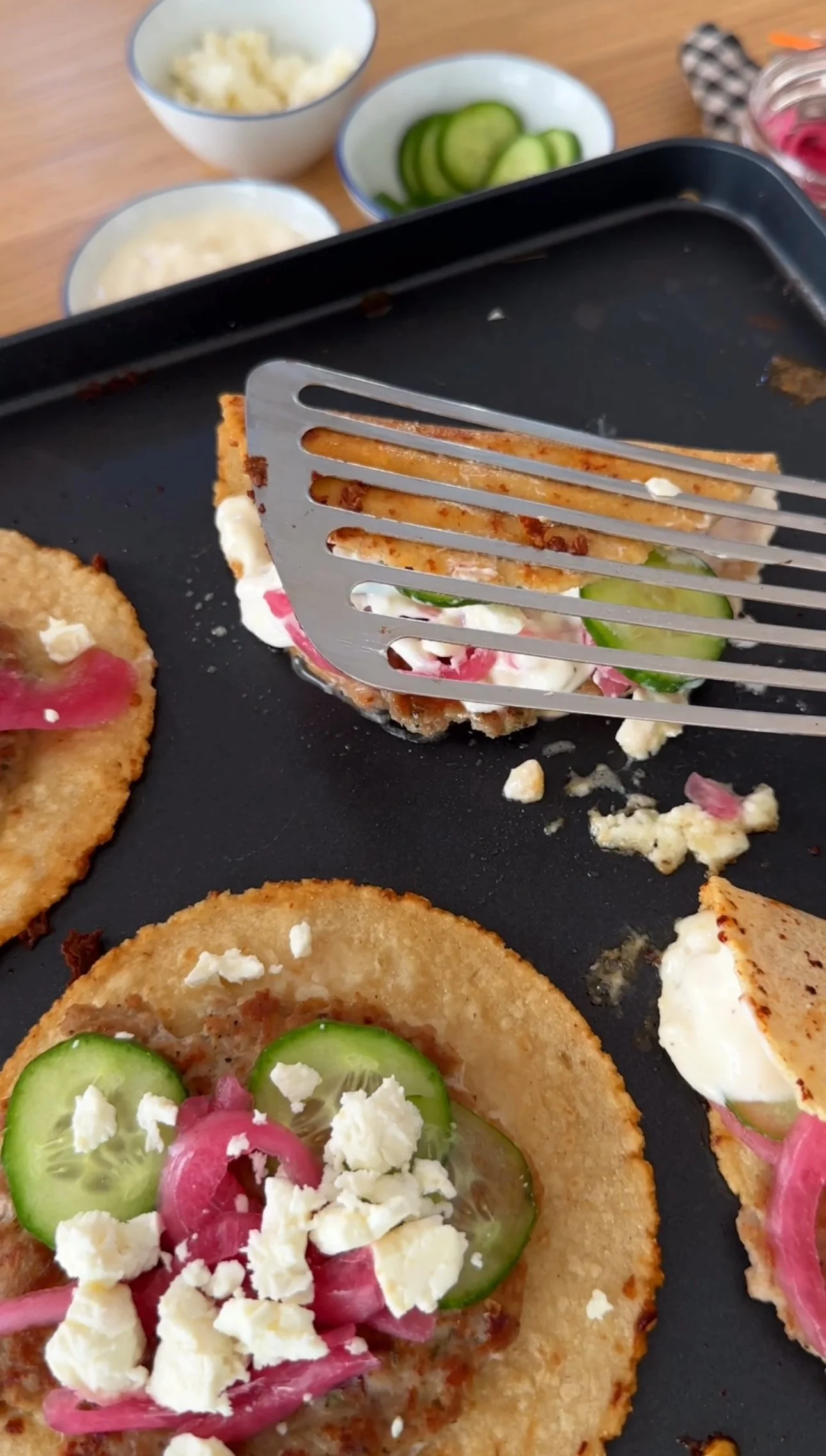 Honestly, these turkey smash tacos are a go-to in our house. We are absolutely obsessed with them! We even add French fries to some of the tacos. The combo is fantastic!