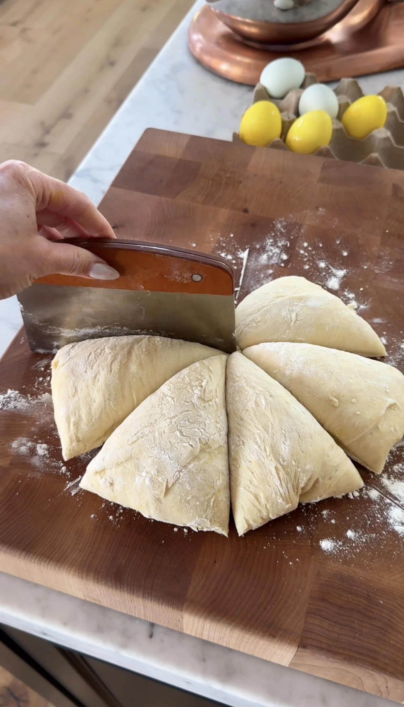 Cut the dough into 6 pieces. Roll each piece to form a 1-inch wide rope, about 14 inches long. ** This is for 3 LARGE nests.