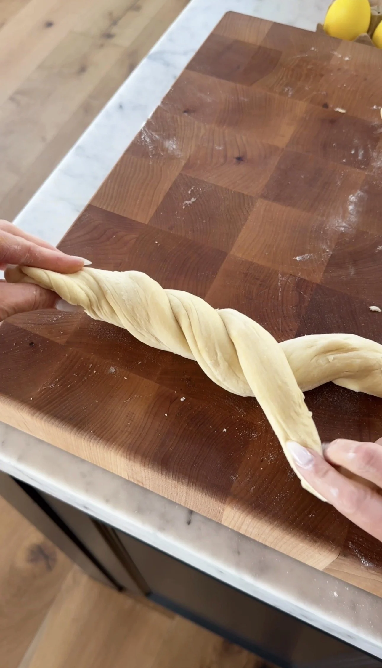 Repeat with the remaining dough ropes. Arrange only two loaves per baking sheet to allow enough space for rising.