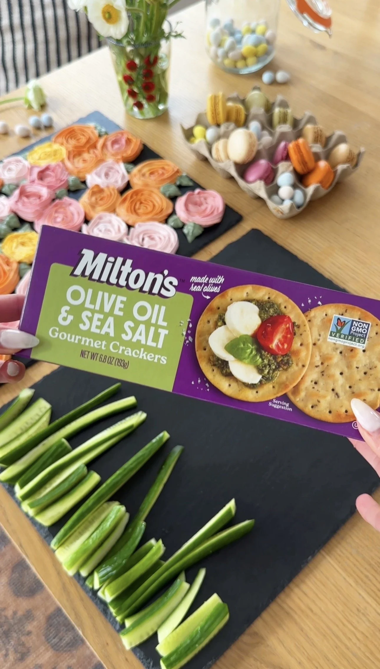 Spring Floral Charcuterie Art 🌼 with @‌EatMiltons because turning creamy goat cheese into edible paint just feels right. I paired the roses with my favorite Milton’s Gourmet and Gluten Free Crackers for serving which add the perfect variety of crunch and texture.
