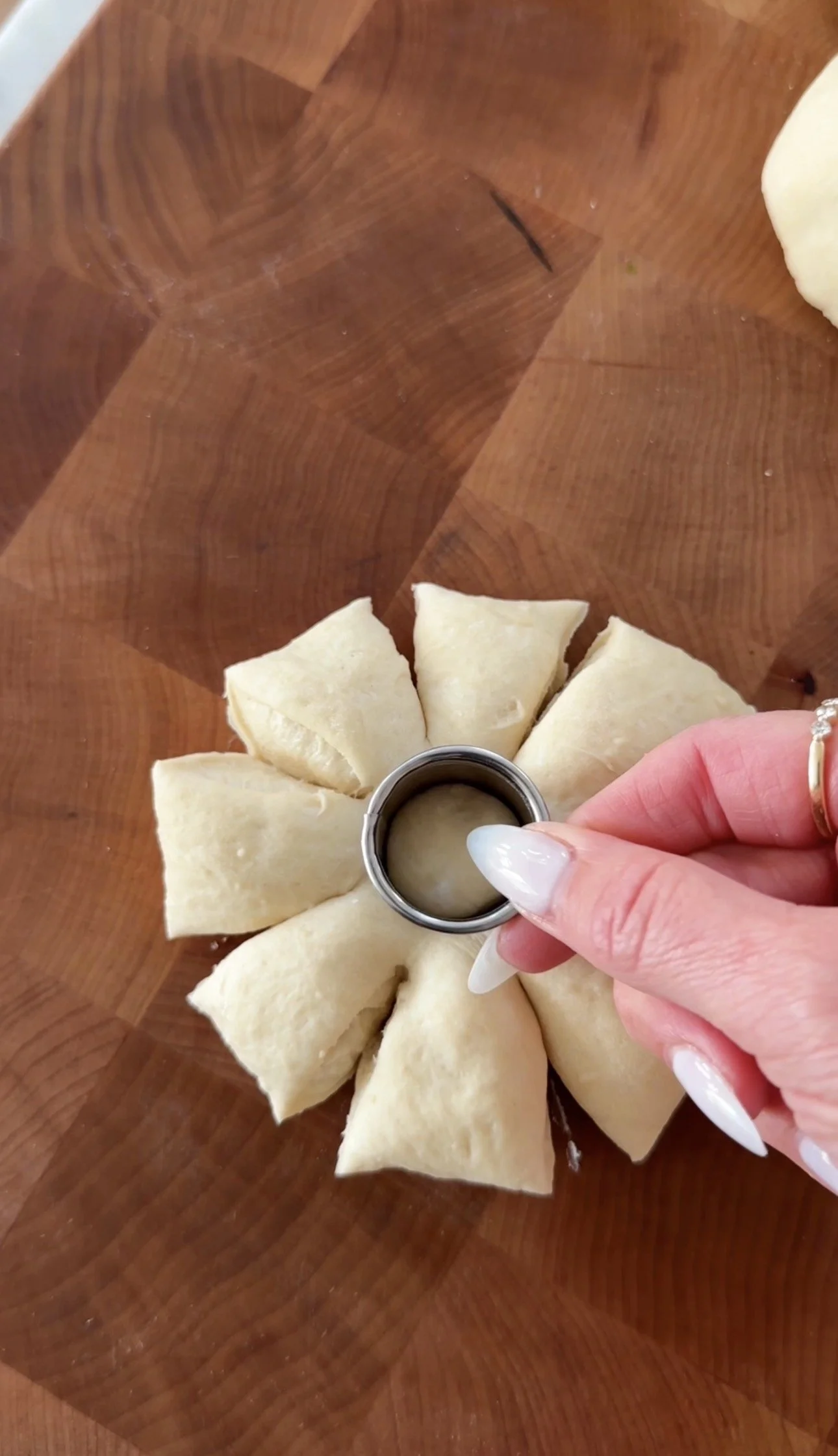 Using a 1-inch round cookie cutter, gently press into the center of each dough ball to create an indentation. Do not cut all the way through—just press enough to create a center well.
