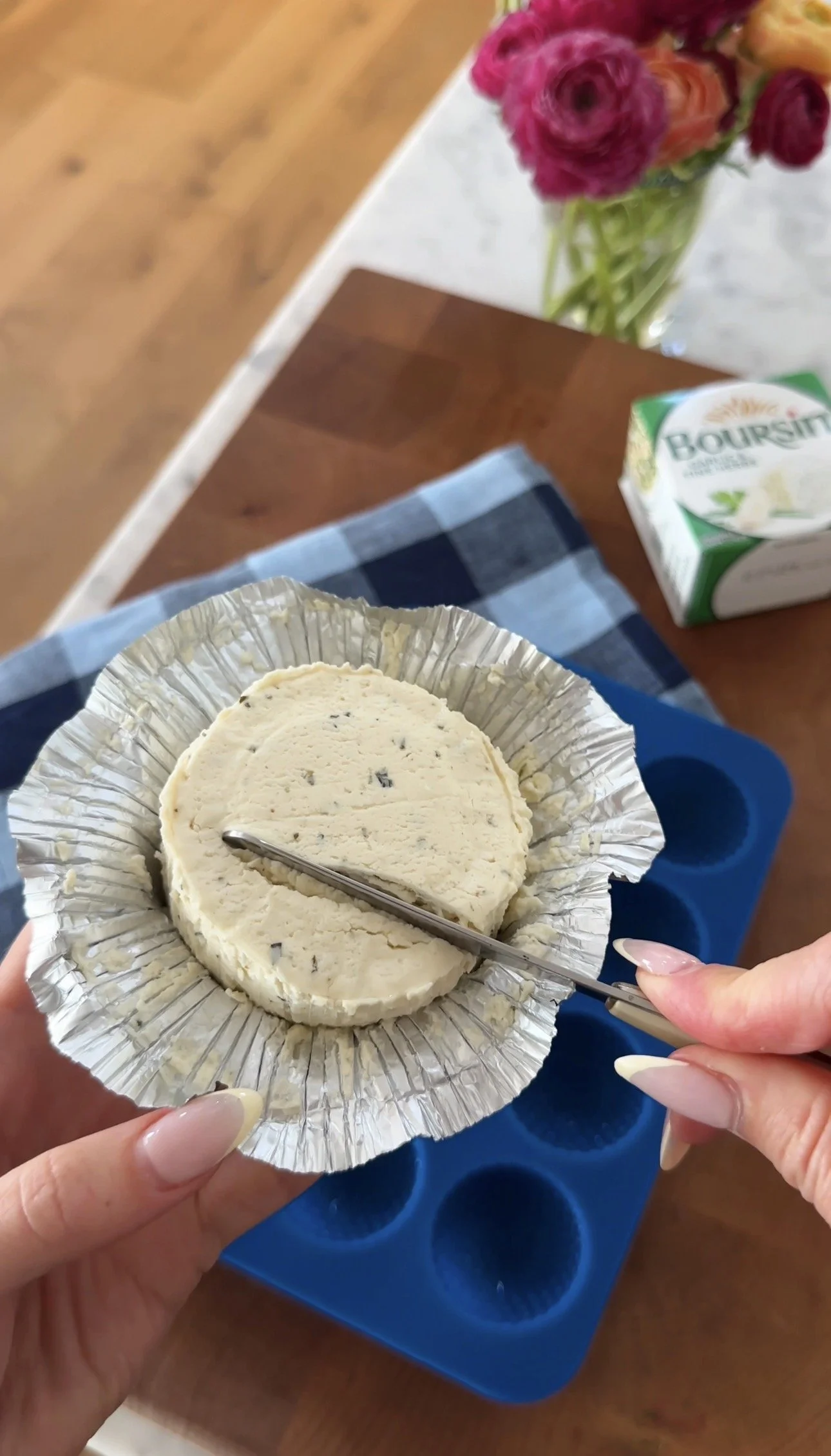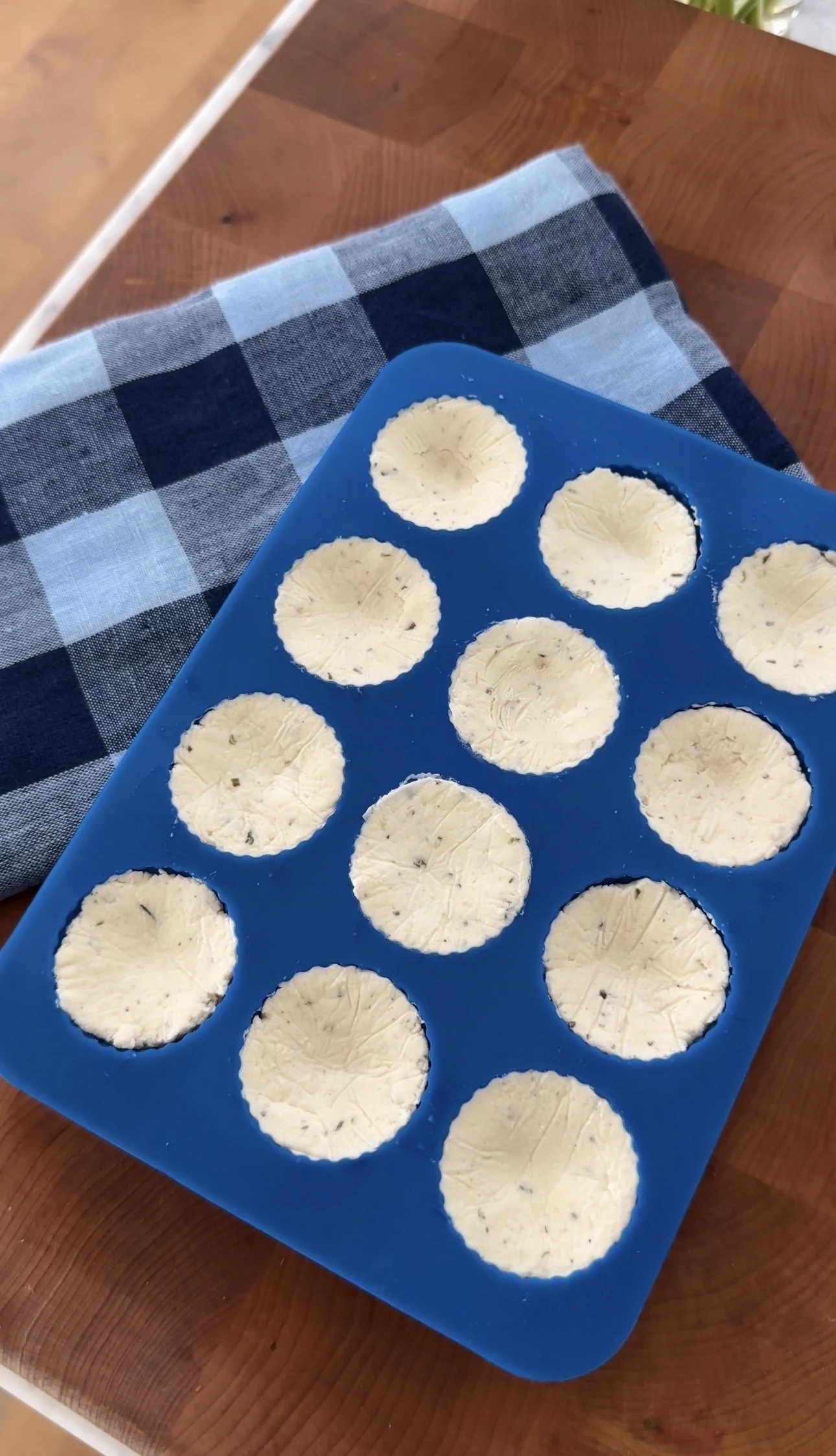 Freeze for one hour, pop out and place on crackers. Let crackers sit at room temperature for 15 minutes until cheese is soft. It will soften very quickly so pop them all out at once.