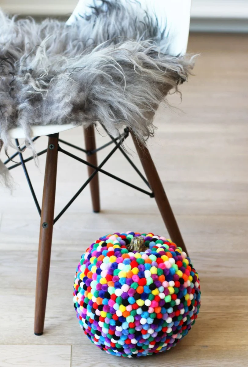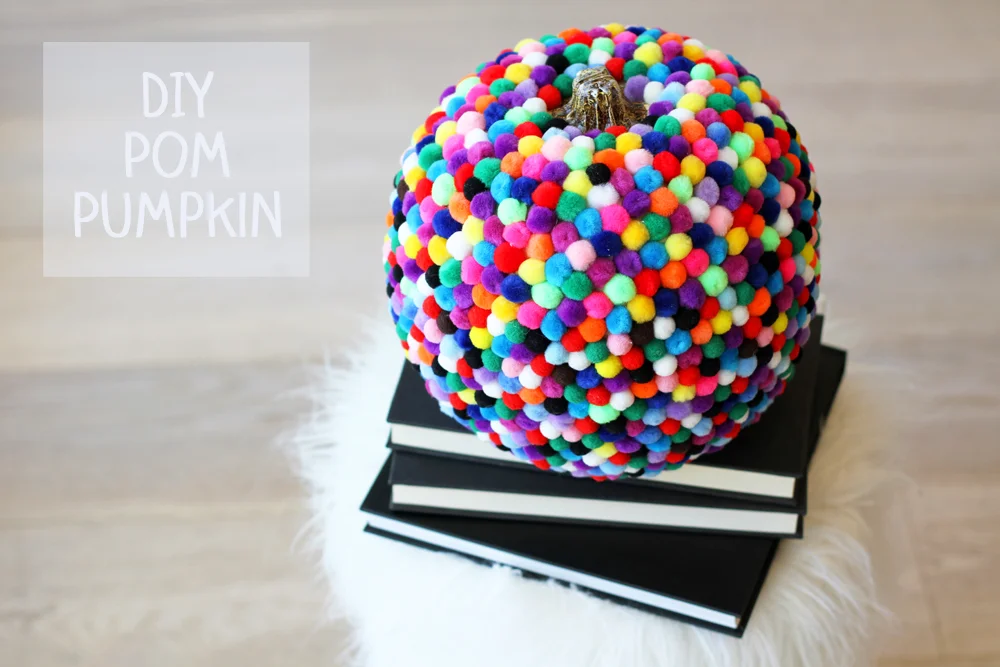 Life is a party and if you aren't celebrating and actually enjoying your days - I mean seriously enjoying your days (and not just pretending for your Instagram while you stalk others and bad mouth their actual happiness because deep down you're unhappy) you're really freaking missing out. I know what it's like to be miserable and I know what it's like to be really happy. I choose happiness today, tomorrow, and every day after. Grab some poms (1000 to be correct) and make yourself one of these super happy Halloween pumpkins!