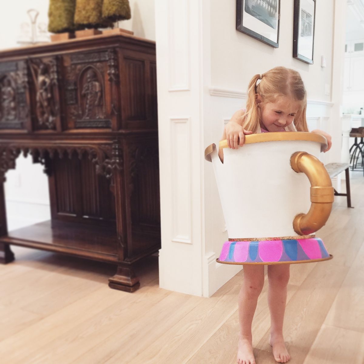 My daughter Lily was in a play and she was given the part of Chip so obviously I had to be completely obnoxious and make a Chip costume for her. Below is my journey of how I turned a plastic flower pot into a Chip costume. See below!