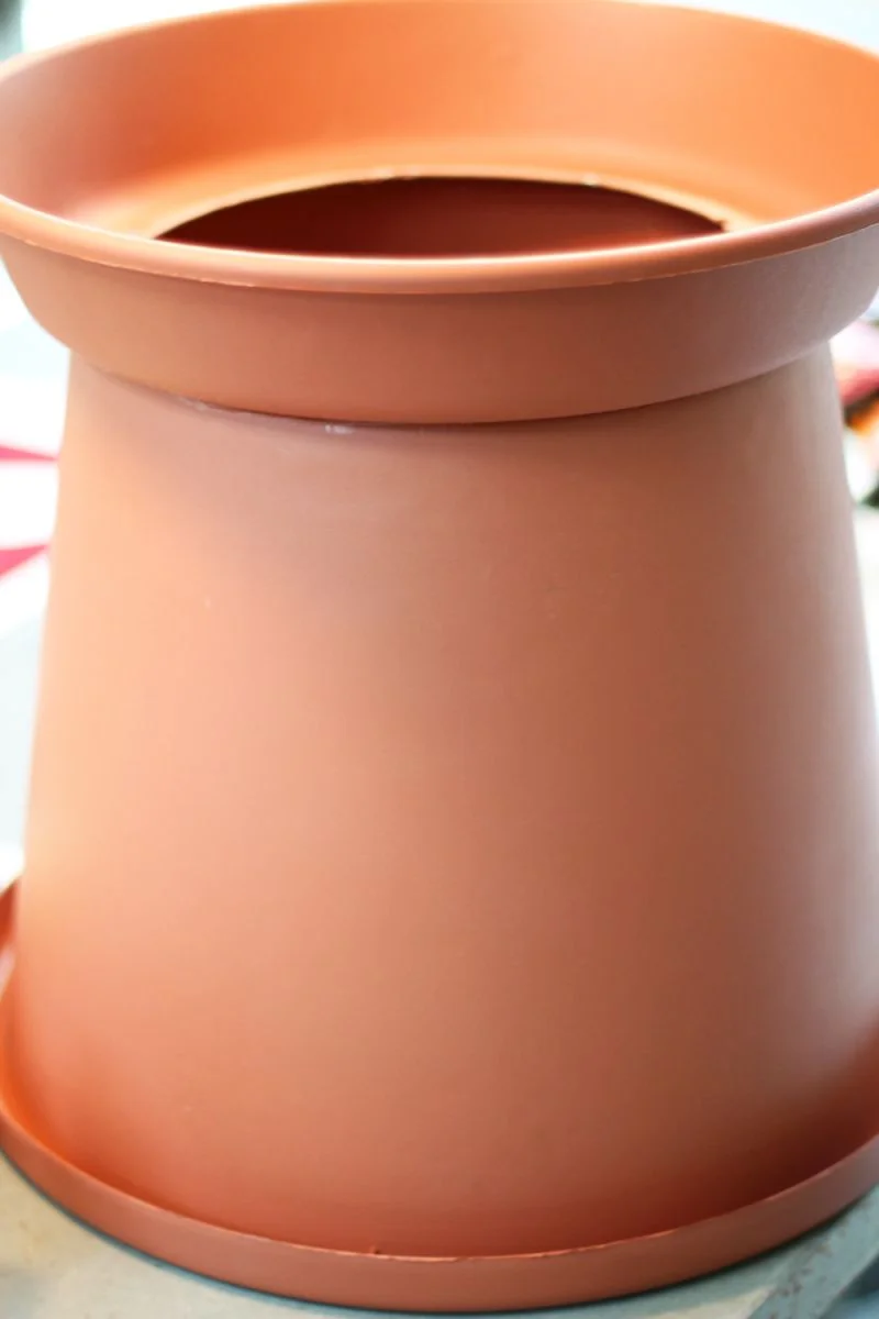 3. Flip the flower pot base over so it is upside down and using Epoxy 6000 attach the lid to the pot.