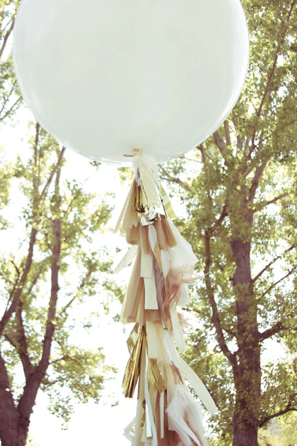 Now this is where you get creative. We added feathers to our balloons. You could easily add colorful ribbon as well. It just makes the balloon even more special.