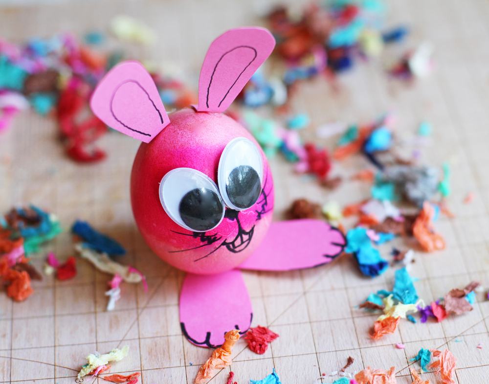 4. Draw little whiskers and a mouth on the bunny, and eye shadows, with your Sharpie.
