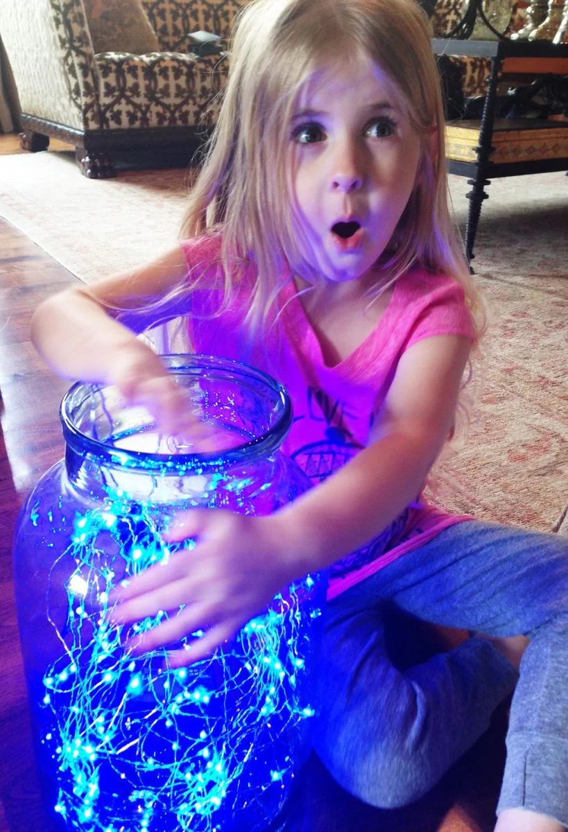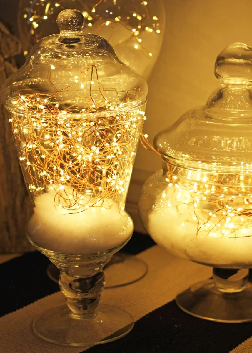 All you need are some battery operated twinkle lights and an apothecary jar.