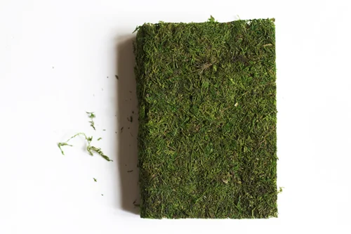 Now it's time to cover your book. For this book I chose moss and I used the "moss table runner" from Michaels. You get about 6' in a roll. Using spray adhesive, spray your book cover and spine. Then wrap with moss and do the same with the back of the book.