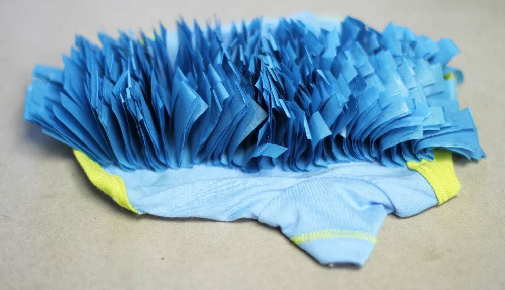 1. Cut strips of your tissue and fringe the edges (cut into strips) then hot glue directly to the shirt. Continue on all sides until all fluffy.