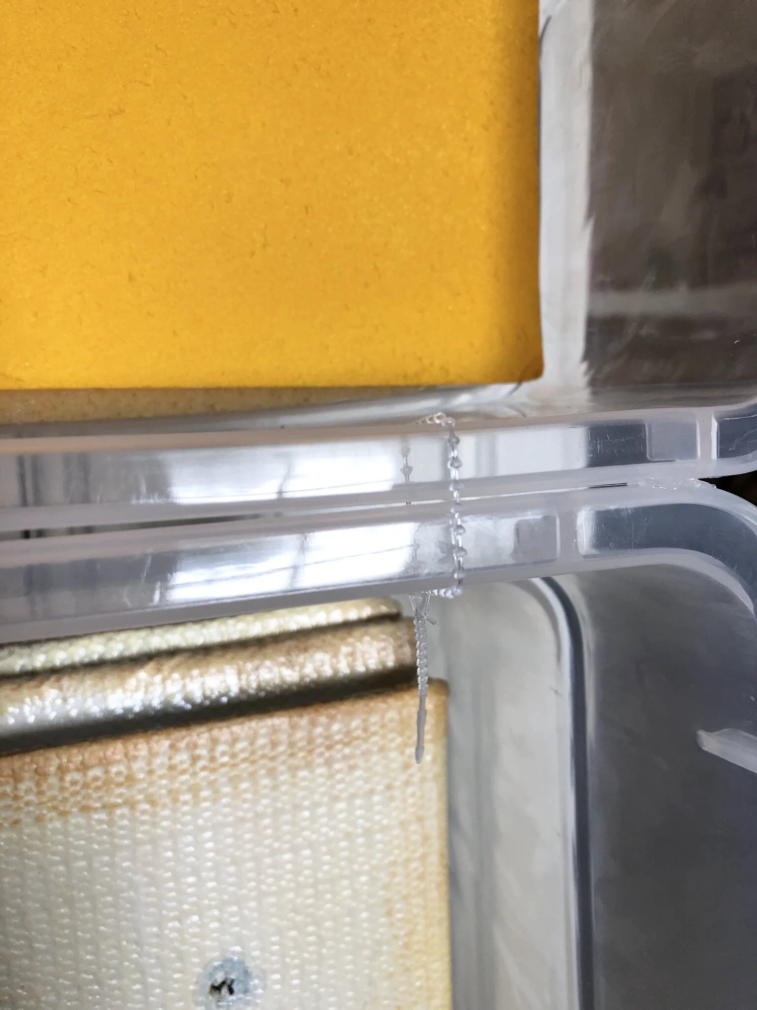 Cut your piece of stiff felt to size so it fits perfectly on top of your sponges and is snug in the clear bin. Spray paint golden yellow and let dry. The exact color I used is above.