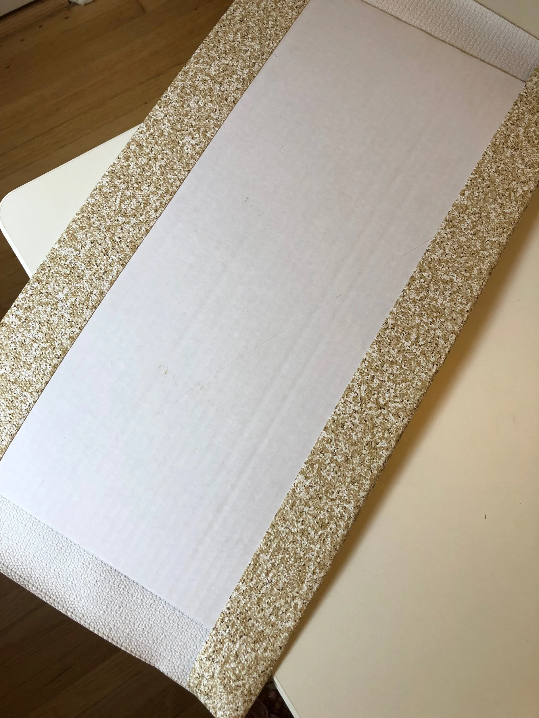 Next, you will make the “crackers”. I made all my crackers roughly 22”L x 15” W, but you will need to cut the cardboard to the size of your bin. Once all the cardboard is cut, wrap each cracker in textured contact paper on one side only. I used the speckled contact paper from Home Depot because I think it gives the crackers a more realistic look. Use a small amount of hot glue to adhere the contact paper and secure the corners.