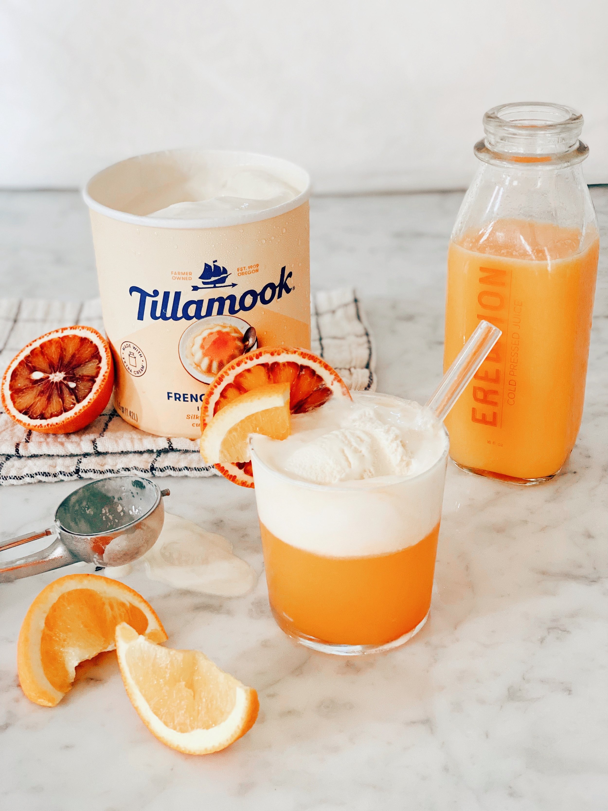 One of my favorite go-to Sunday brunch cocktails is the Mimosa. This is essentially a more decadent mimosa because we added a big scoop of vanilla ice cream. The ice cream makes the cocktail so creamy and delicious. You will absolutely love it.